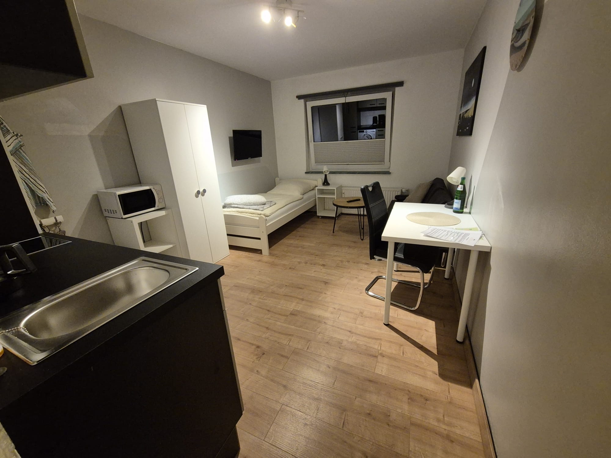 Dieses Apartment verfügt über 1 Bett in 1 Zimmer. In dem Apartment sind 1 vollausgestattete Küche, 1 Badezimmer, Waschmaschine, WLAN, TV, Parkplatz vor der Tür.